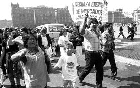 Locatarios de mercados se manifestaron en el Zócalo y algunos se dirigieron a la ALDF n Foto: Carlos Mamahua