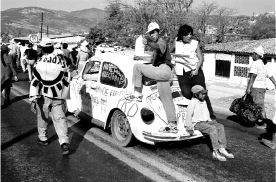 Algunos marchistas se las ingenian para avanzar sin caminar n Fotos: J. Guadalupe Pérez