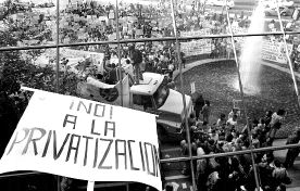 Trabajadores del Sindicato Mexicano de Electricistas, durante un mitin que efectuaron frente a las oficinas del Senado, en la Torre de El Caballito n Foto: José Carlo González