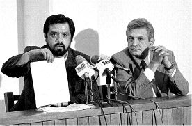 El presidente nacional del PRD, en conferencia de prensa en la que anunció la presentación de una denuncia por irregularidades en el proceso de elección de gobernador en Guerrero. Mientras, la marcha prosiguió este martes y para hoy llegará a Iguala, en Tierra Caliente n Fotos: Francisco Olvera y Carlos Cisneros