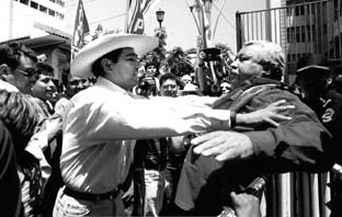 El perredista Félix Salgado forcejea en