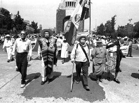 Don Félix Serdán, un veterano combatiente del movimiento jaramillista, portó el lábaro patrio del Monumento a la Revolución al Zócalo n Foto: Guillermo Sologuren