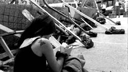 "Por eso da coraje -comenta una chava- que digan en los medios que somos violentos y que lo único que no queremos es entrar a clases. Aquí hay más democracia y diálogo que en muchos lados."