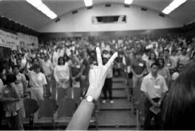 En la Facultad de Química se guardó un minuto de silencio en memoria de Martha Alejandra Trigueros Cruz, alumna del CCH Oriente, quien fuera atropellada y muerta el viernes pasado durante la marcha contra el alza de cuotas n Foto: José Antonio López