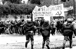 En Belgrado, más de 5 mil personas, entre las que figuraron grupos pacifistas griegos y alemanes, se congregaron en torno al edificio de la televisión estatal serbia que fue bombardeado por la OTAN el viernes.