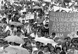 Manifestación de miembros del STUNAM en la explanada de rectoría, en la que patentizaron su apoyo al paro realizado por estudiantes n Foto: Carlos Mamahua