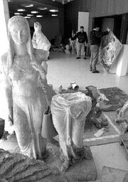 Trabajadores del Museo de Arte Contemporáneo de Belgrado, bombardeado por la OTAN, trasladan pinturas y esculturas que fueron dañadas durante el ataque n Fotos: Reuters