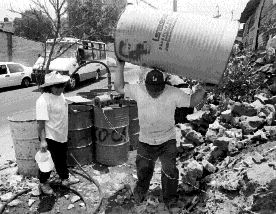 Dos veces por semana, varias familias de la colonia Hornos, en la delegación Tlalpan surten sus tambos ante la carencia de tuberías n Foto: Carlos Mamahua