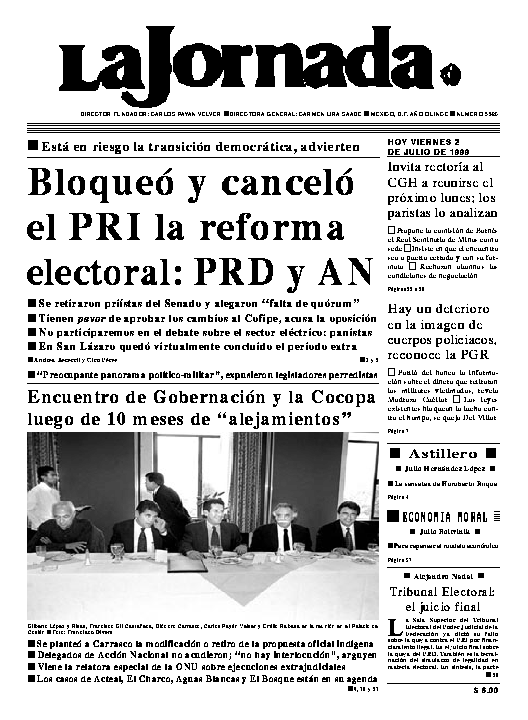 México, D.F. viernes 2 de julio de 1999