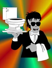 Pero el Hombre de los Lavabos es insaciable y a cada segundo propone servicios innecesarios en pos de una mayor propina. Para tales efectos, dispone de una charola con la utilería básica para que uno se sienta protagonista de una vida patibularia.