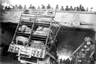 desnivel de Viaducto y Patriotismo un camión que transportaba