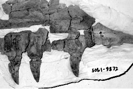 En la gráfica aparece la mandíbula superior de un Mosasaurus, uno de los diversos fósiles descubiertos en una expedición a la Antártida e islas cercanas por un equipo de la Fundación Científica Nacional de Estados Unidos en 1998. Los geólogos han descubierto que los restos fosilizados de los dinosaurios muestran que muchas máquinas devoradoras prehistóricas se expandieron en un territorio más amplio de lo que se creía * Foto: Reuters