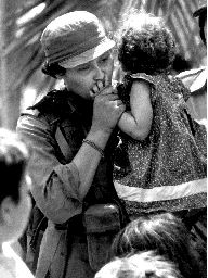 guerrillera sandinista con su hijo, cuando las tropas