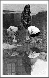 Niñas juegan en un charco, en el Zócalo * Foto: José Carlo González