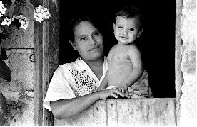 Una mujer con su hijo, en el ejido chiapaneco Cal y Mayor, donde se incrementó la presencia policiaca al resurgir el conflicto por la zona de Los Chimalapas Ť Foto: Tomás Bravo
