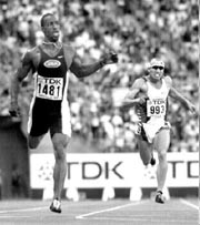 Johnson, recordista también en 200 metros, se adjudicó su cuarta medalla de oro seguida en los 400, al pulverizar el récord que su compatriota Harry Butch Reynolds había establecido desde 1988. Esa marca a su vez había durado 20 años, desde que el también estadunidense Lee Evans corrió en 43.86, en México 68.