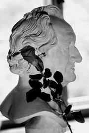 Con un nutrido programa de festejos, Alemania celebró ayer el 250 aniversario del natalicio de su escritor más ilustre, Johann Wolfgang von Goethe. La "fiebre de Goethe" se apoderó desde la noche del viernes de Francfort -la ciudad donde nació el 28 de agosto de 1749 el poeta, novelista, dramaturgo y científico- y de Weimar, donde vivió y trabajó más de 50 años, hasta su muerte, en 1832. En Francfort los festejos tuvieron su punto culminante este mediodía con la entrega del Premio Goethe al escritor nacional Sigfried Lenz. La foto reproduce una efigie del humanista en Weimar n Foto: Jens Meyer /Ap
