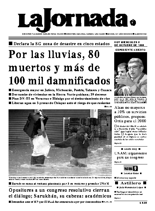 Emergencia mayor en Jalisco, Michoacán, Puebla, Tabasco y Oaxaca