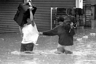 Tulancingo quedó cerrado a todo tipo de tránsito terrestre por las inundaciones que afectan a casi toda la ciudad. En algunas zonas, el agua alcanzó metro y medio de altura Ť Foto: Juan Sotelo