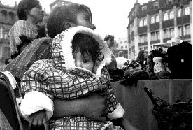 Desplazados de Acteal, durante la inauguración de la campaña Cuatro Líneas por la Paz en Chiapas Ť Foto Rosaura Pozos UNOS CUENTAN MILLONES Y OTROS CENTAVOS