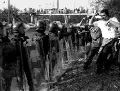 Estudiantes de la UNAM rechazan la presencia de los cuerpos policiacos durante su recorrido por el Periférico Ť Foto: Carlos Ramos Mamahua BLOQUEO EN TAPACHULA