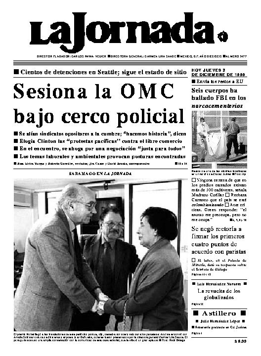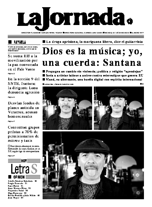 La Jornada, Coordinación de Sistemas Francisco Petrarca 118, Col. Chapultepec Morales, delegación Miguel Hidalgo México D.F. C.P. 11570 Teléfono (525) 262-43-00, FAX (525) 262-43-56 y 262-43-54