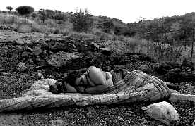 Un indigente duerme junto a la autopista México-Querétaro Ť Foto: Tomás Bravo