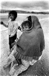 En grupos de tres o cuatro personas ųcasi en su totalidad mujeres y niñosų y después de encender una pequeña fogata para aliviarse del frío del desierto, se extienden a lo largo de la interminable recta de la carretera 57. Son cientos: seiscientos, ochocientos, tal vez más. Mientras, sobre el concreto de la autopista los automóviles y camiones pasan como un suspiro a 150 kilómetros por hora. Ocasionalmente alguno disminuye su marcha unos segundos para arrojar alguna bolsa con dos o tres playeras y, si se tiene suerte, con algunas monedas o algún par de viejos zapatos. Pero la mayoría pasa de largo.