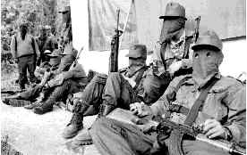 Miembros del Partido Demócrata Popular Revolucionario y del Ejército Popular Revolucionario, a la hora de la comida en algún lugar de la República * Foto: Carlos Cisneros