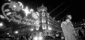 Aspecto del Zócalo capitalino durante el ensayo de luces con motivo de las celebraciones del fin de milenio Ť Foto: Inti Vargas /Cuartoscuro
