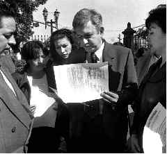 Andrés Manuel López Obrador, aspirante a la jefatura de gobierno capitalino por el Partido de la Revolución Democrática, recibe un documento de apoyo por parte de diversas ONG Ť Foto: María Luisa Severiano Serrano