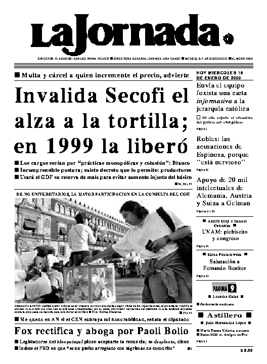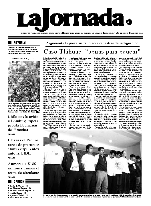 La Jornada, Coordinación de Sistemas Francisco Petrarca 118, Col. Chapultepec Morales, delegación Miguel Hidalgo México D.F. C.P. 11570 Teléfono (525) 262-43-00, FAX (525) 262-43-56 y 262-43-54