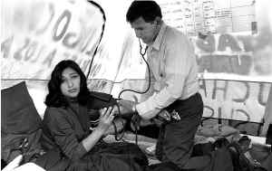 Plantón permanente de padres de estudiantes presos, en la explanada de rectoría Ť Foto: Duilio Rodríguez