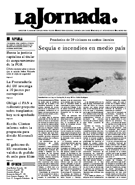 La Jornada, Coordinación de Sistemas Francisco Petrarca 118, Col. Chapultepec Morales, delegación Miguel Hidalgo México D.F. C.P. 11570 Teléfono (525) 262-43-00, FAX (525) 262-43-56 y 262-43-54