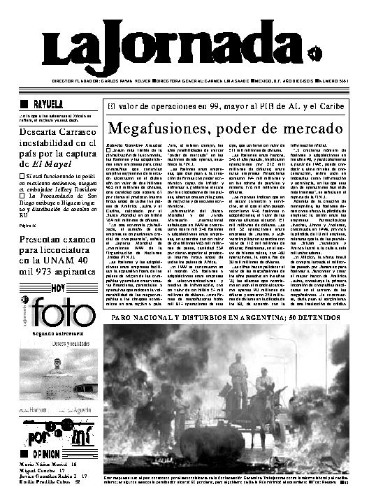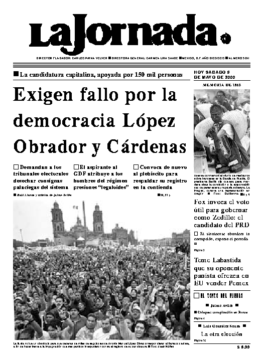 La Jornada, Coordinación de Sistemas Francisco Petrarca 118, Col. Chapultepec Morales, delegación Miguel Hidalgo México D.F. C.P. 11570 Teléfono (525) 262-43-00, FAX (525) 262-43-56 y 262-43-54