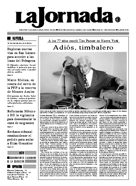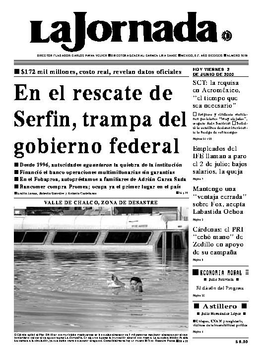 La Jornada, Coordinación de Sistemas Francisco Petrarca 118, Col. Chapultepec Morales, delegación Miguel Hidalgo México D.F. C.P. 11570 Teléfono (525) 262-43-00, FAX (525) 262-43-56 y 262-43-54