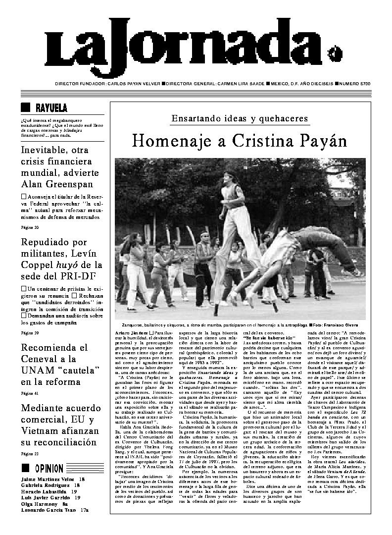 La Jornada, Coordinación de Sistemas Francisco Petrarca 118, Col. Chapultepec Morales, delegación Miguel Hidalgo México D.F. C.P. 11570 Teléfono (525) 262-43-00, FAX (525) 262-43-56 y 262-43-54