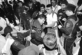 de bandos antagónicos se enfrentaron a patadas y toletazos. Tras el