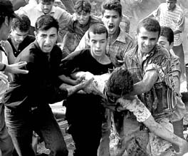Auxilio a una de las decenas de víctimas en los enfrentamientos entre