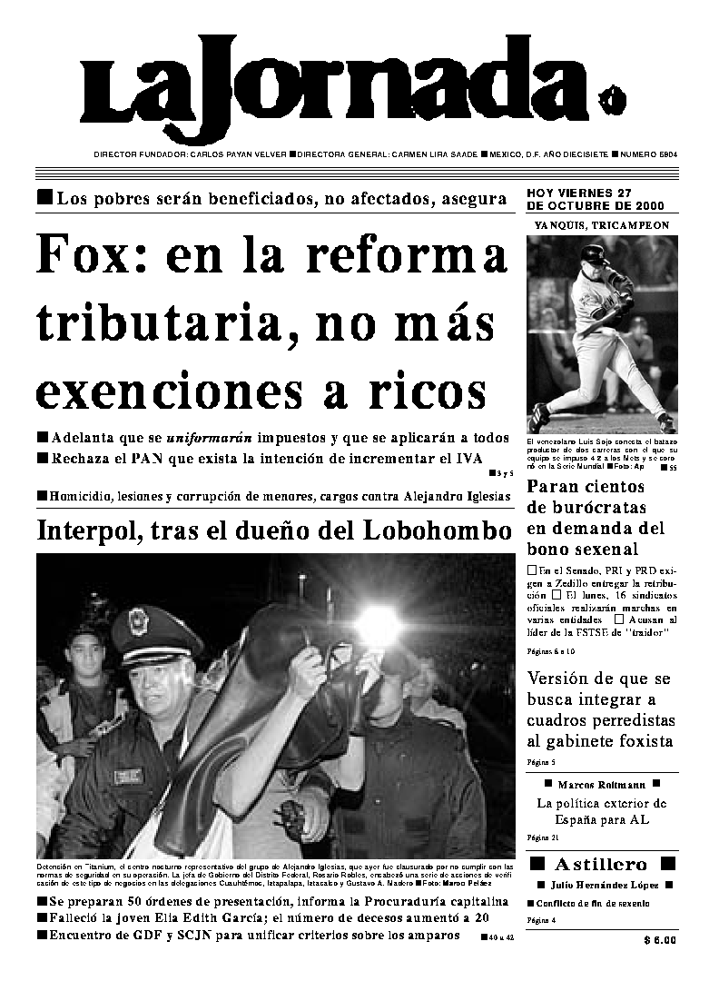 PRI y PRD exigen a Zedillo entregar la retribución El lunes, 16