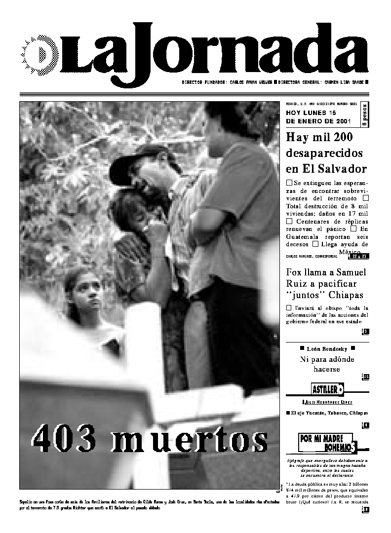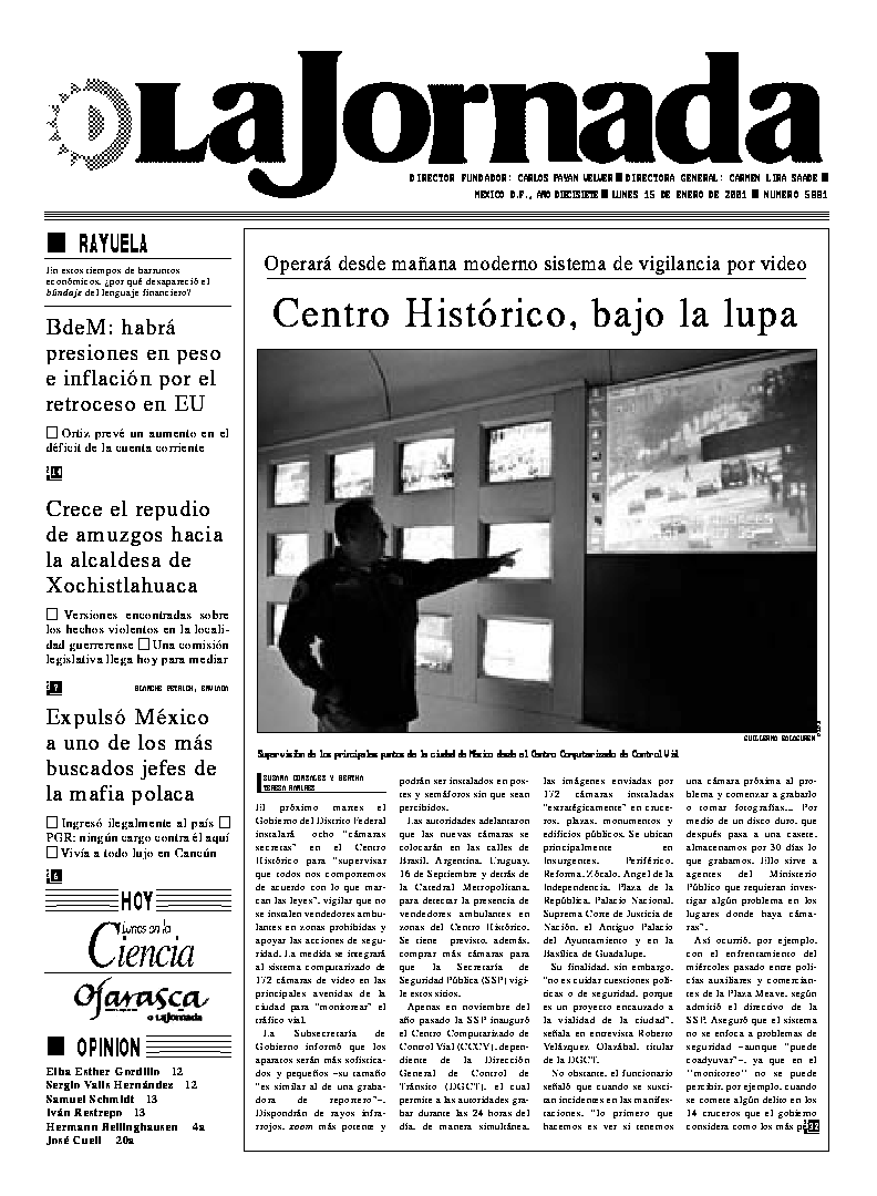La Jornada, Coordinación de Sistemas Francisco Petrarca 118, Col. Chapultepec Morales, delegación Miguel Hidalgo México D.F. C.P. 11570 Teléfono (525) 262-43-00, FAX (525) 262-43-56 y 262-43-54