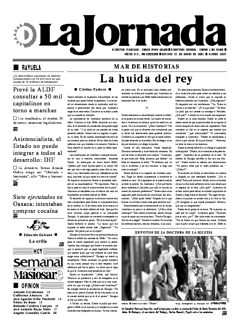 La Jornada, Coordinación de Sistemas Francisco Petrarca 118, Col. Chapultepec Morales, delegación Miguel Hidalgo México D.F. C.P. 11570 Teléfono (525) 262-43-00, FAX (525) 262-43-56 y 262-43-54