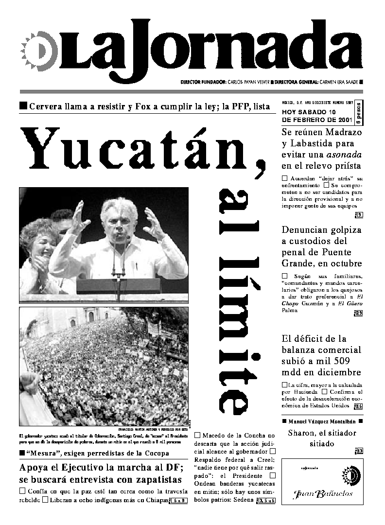 La Jornada, Coordinación de Sistemas Francisco Petrarca 118, Col. Chapultepec Morales, delegación Miguel Hidalgo México D.F. C.P. 11570 Teléfono (525) 262-43-00, FAX (525) 262-43-56 y 262-43-54