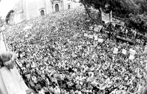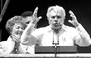 El gobernador yucateco acusó al titular de Gobernación, Santiago Creel, de ``acosar'' al Presidente para que se dé la desaparición de poderes, durante un mitin en el que reunió a 8 mil personas FOTO FRANCISCO MARTIN/NOTIMEX Y PERIODICO POR ESTO
