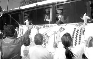 despedir a los representantes del EZLN. La caravana llegó por la tarde