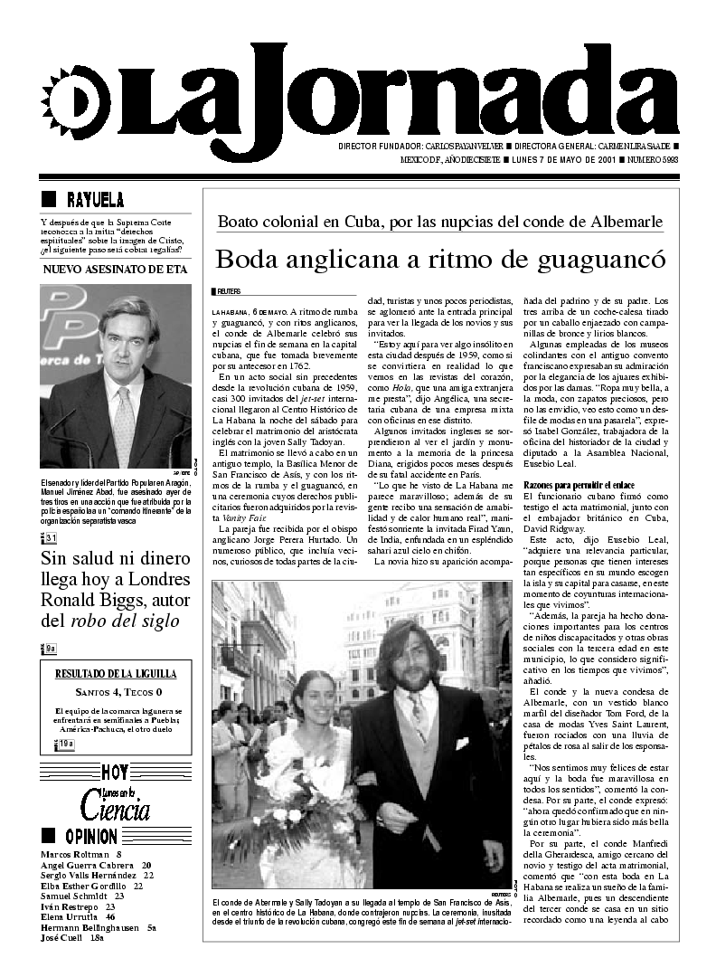 La Jornada, Coordinación de Sistemas Francisco Petrarca 118, Col. Chapultepec Morales, delegación Miguel Hidalgo México D.F. C.P. 11570 Teléfono (525) 262-43-00, FAX (525) 262-43-56 y 262-43-54