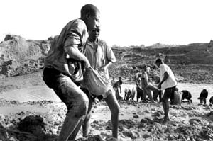 quienes remueven lodo en la mina Kabuebue, en la República Democrática