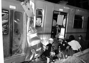 CHOCAN DE FRENTE DOS TRENES LIGEROS; UN MUERTO Y 30 HERIDOS