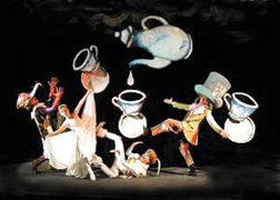 Alicia en el país de las maravillas De los dos libros de Alicia en el País de las Maravillas y A través del espejo, sin duda el primero es el que más adaptaciones, versiones e interpretaciones ha inspirado en el teatro, el cine, la historieta y la pintura, desde el delicioso dibujo animado de Walt Disney (1951) hasta la brillante relectura que hizo el cineasta checo Jaromil Jires en 1969: Valeria y la semana de las maravillas (filme para adultos acerca de la chica que tiene su primera menstruación). Una de las más sorprendentes es quizás la del Teatro Negro de Praga, con guión, coreografía y dirección de Jiri Srnec y música de Jiri Koptik. El espectáculo se presentó en el Teatro Metropolitan de la Ciudad de México del 14 al 17 de junio. Esta compañía teatral checoslovaca está considerada, desde su fundación en 1961, como una de las más destacadas representantes del teatro checo en el mundo. La característica más sobresaliente de dicho teatro es la aplicación de un simple truco: la llamada cámara negra. La técnica del Teatro Negro de Praga no implica solamente que los actores vestidos de negro, al igual que los accesorios, no sean vistos por el espectador, ya que todo lo que aparece en escena adquiere movimiento y vida particular. El empleo de este truco no es un fin en sí mismo, sino un instrumento para lograr una metáfora escénica y mímica realizada a través del discurso musical y del movimiento de los objetos y los actores.