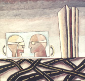 En ocasión de su exposición retrospectiva en el Museo José Luis Cuevas (El oxidado espíritu del siglo, 1998), llamé a la pareja "cronistas ontológicos de su tiempo". Y, en efecto, en sus últimas exhibiciones La construcción del día, Galería Óscar Román, 1998; El hábito de la luz, Casa Lamm, 2000; Los ojos de la memoria, Universidad Autónoma Metropolitana, 2001 se revelan como testigos y críticos implacables de la realidad contemporánea, siempre a partir de su relación del yo con el otro. Ahora los percibo como "funambulistas", cuyo espíritu valiente y audaz les permite dominar el difícil arte de avanzar en la cuerda floja sin caer. |